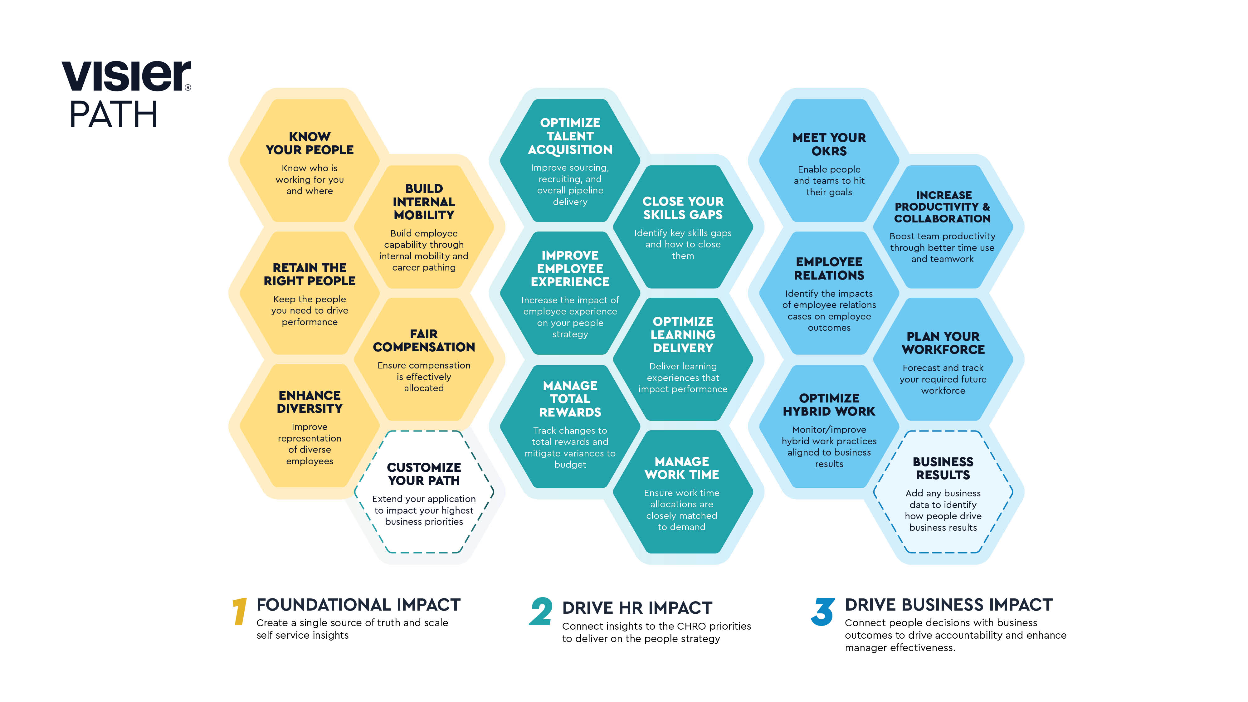 The Visier Path shows how to succeed in your people analytics journey based on what's worked for thousands of other organizations. See the path here.